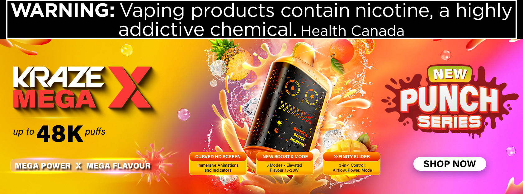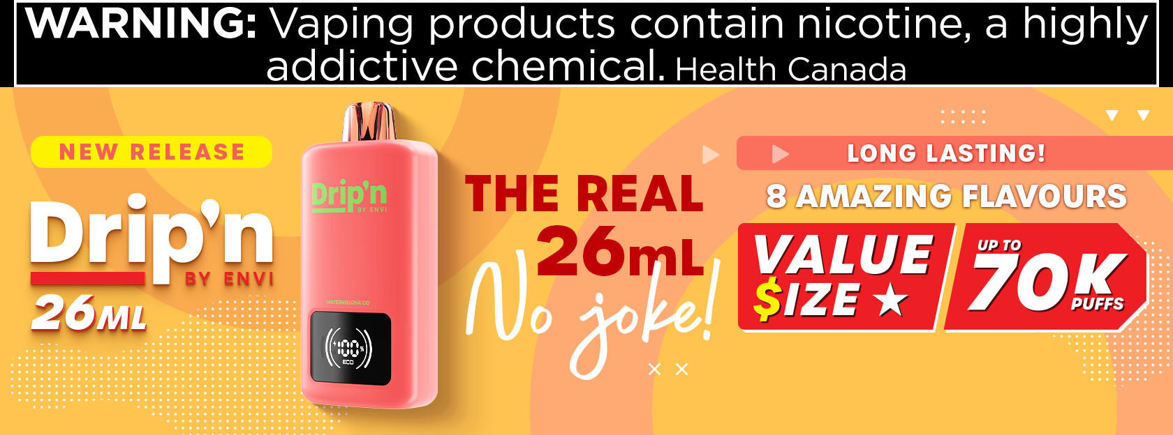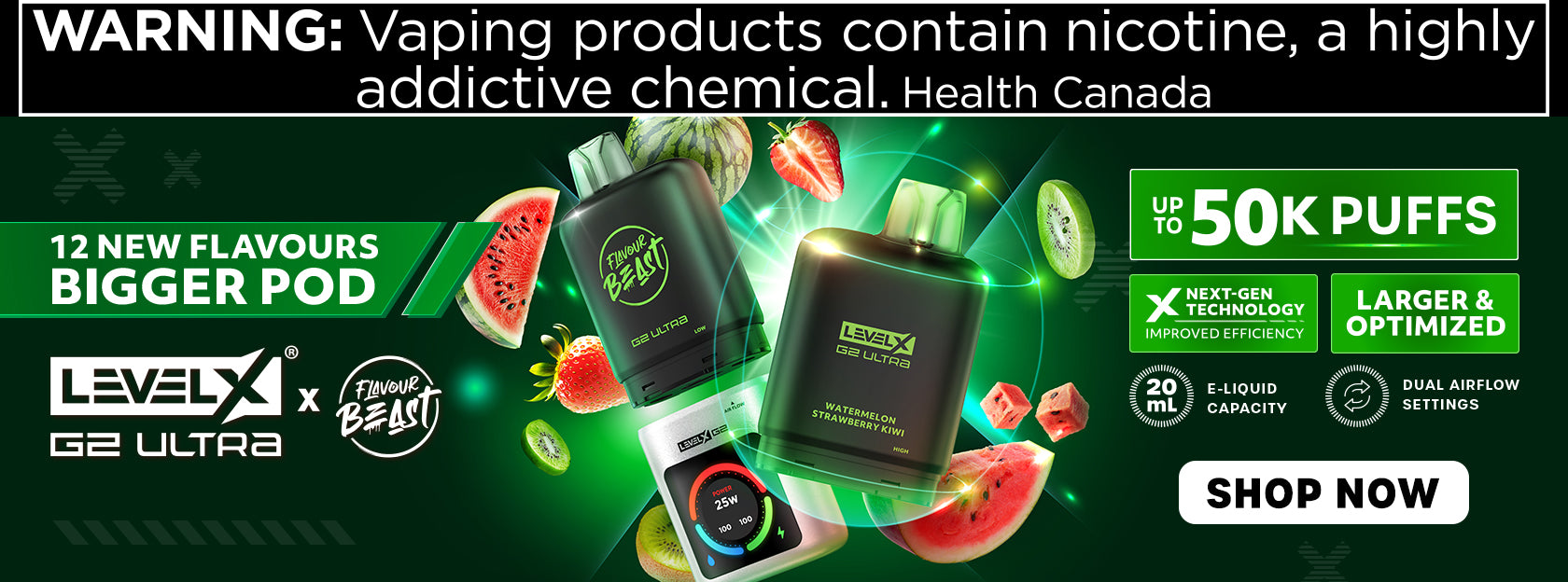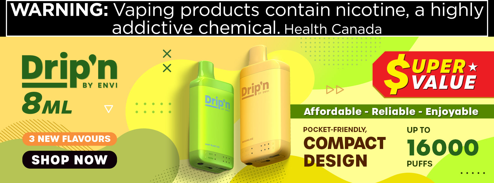 WARNING: Vaping products contain nicotine, a highly addictive chemical. ~Health Canada~